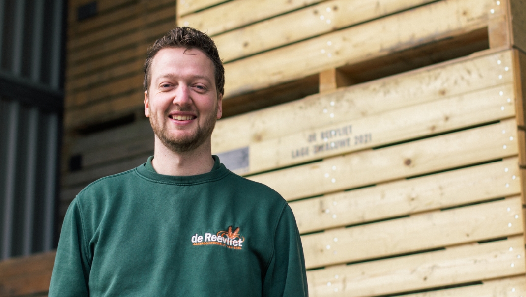 Joris van Geel van akkerbouwbedrijf Reevliet in Hoge Zwaluwe wil zeker weten dat z’n pootgoed klaar staat op het moment dat hij het land op kan. Hij laat het in februari komen en bewaart het in de koelcel van de knolselderij. “We houden zo het heft in eigen handen.”